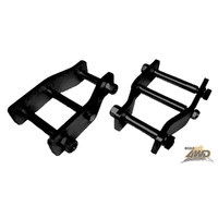 Roadsafe extended shackles incorporate some great design features. Grease nipple protection is built in, to aid in avoiding grease nipple damage from rocks and debris that could be encountered in the installed position, in addition to offset grease holes for maximum grease dispersion, and improved bushing longevity. Giving 50mm more length than the factory shackle you will also see a lift of between approx. 25-30mm (Depending upon application). Sold in Pairs.
