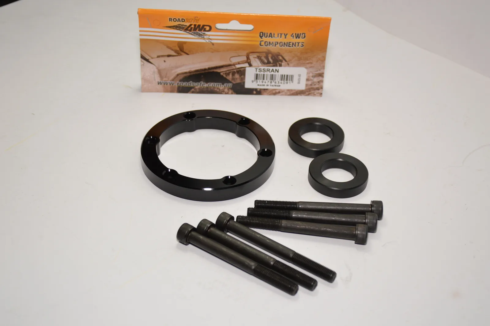 Tail Shaft Spacers are required when you have a large amount of lift and the tail shaft is in danger of separating at the slip joint. The Tail Shaft Spacer simply mounts between the tail shaft flange and the diff flange. Kit includes longer high tensile bolts necessary for installation.