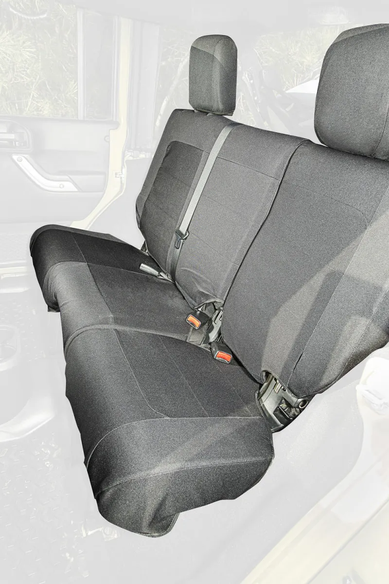 Are you looking for a strong and durable rear seat cover? Then the Rugged Ridge Elite Ballistic-Pro rear seat covers are what you are looking for! Manufactured using a heavy duty 1,200 denier material and a unique ballistic weave creating a very strong cover which will stand up to the rigorous use of the avid off-roader. Rear seat cover allows you to maintain the 60/40 split fold down function.