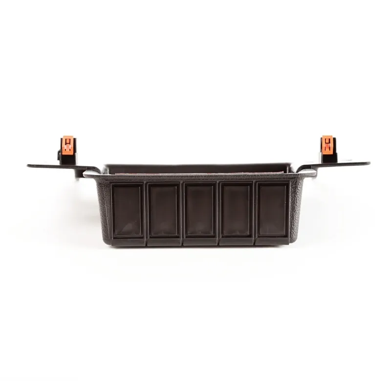 The Rugged Ridge Lower Switch Panel allows for practical & convenient installation of electrical switches in 2011-2017 Jeep Wrangler models, regardless of transmission type (Manual or Automatic). This switch panel replaces the lower center dash panel with an injection-molded panel made of an impact-resistant thermoplastic, matching the color and grain of the factory dash for a finished look. Each panel allows for the addition of up to 5 rocker style switches (available separately) for a variety of fitments. Switches are ergonomically positioned for easy access and effortless operation in your JK, while maintaining the factory correct appearance.