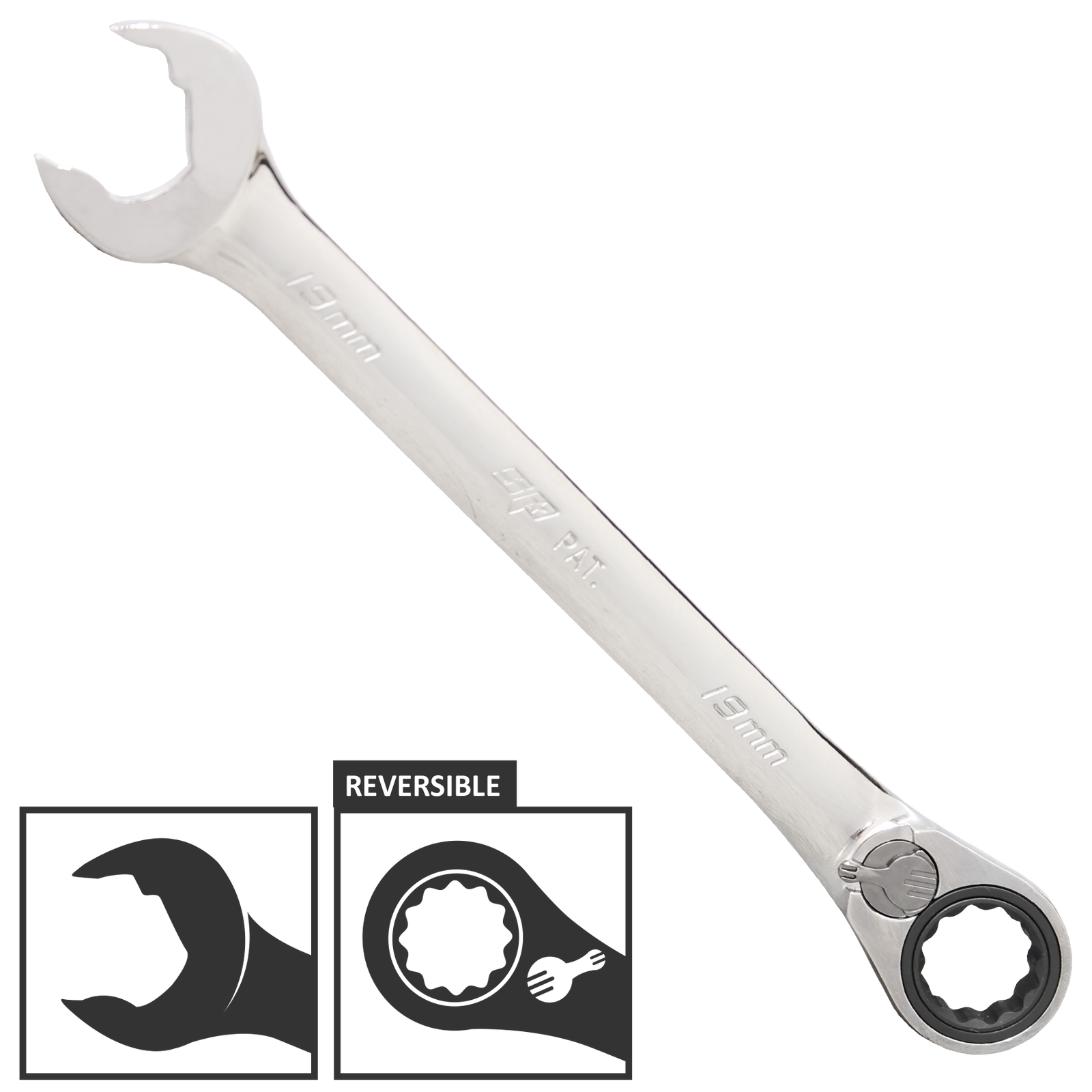 • Ratchet action on open end allows wrench to travel nuts without removing from fastener