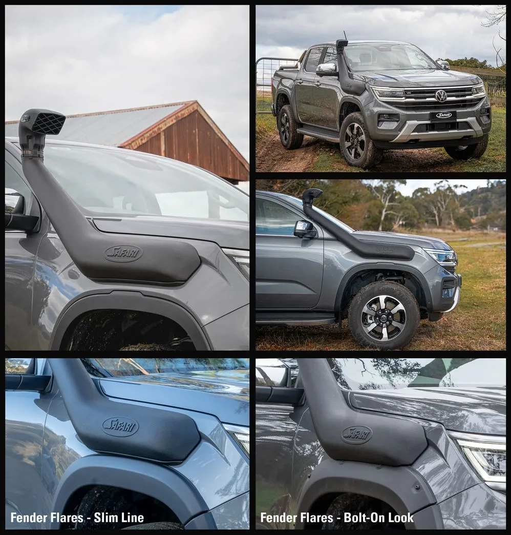 Safari’s traditional style air ram is designed to function as an effective water and dust separator, removing rain and airborne debris from the incoming airstream before it reaches the factory air filter. Whether you’re powering through river crossings, red dirt trails, or tropical downpours, the Safari V-SPEC Snorkel to suit the MY23 Volkswagen Amarok gives you the confidence when it matters most.