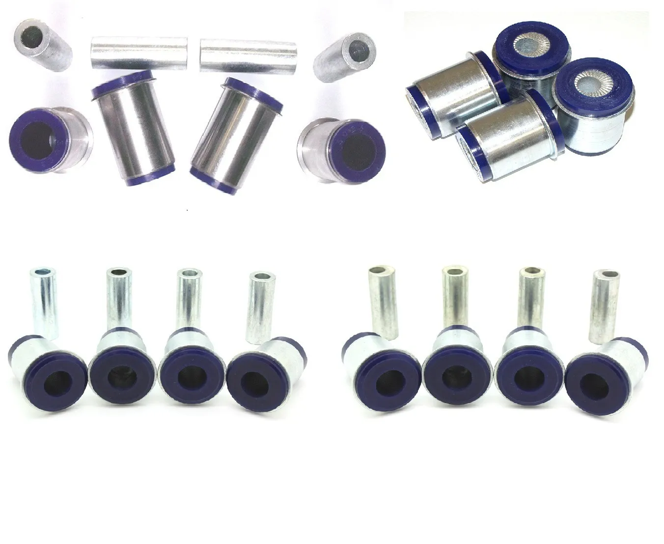 • Kit Contains: Front Control Arm Lower-Inner Bush Kit, Front Control Arm Upper-Inner Bush Kit-Offset, Rear Control Arm Lower-Inner Bush Kit, Rear Control Arm Upper-Inner Bush Kit-Double Offset