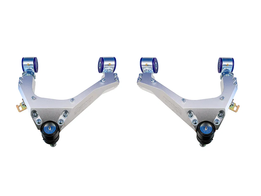 Double adjustable bushes allow for adjustments to be done on the vehicle without having to remove the UCA's from the vehicle.
