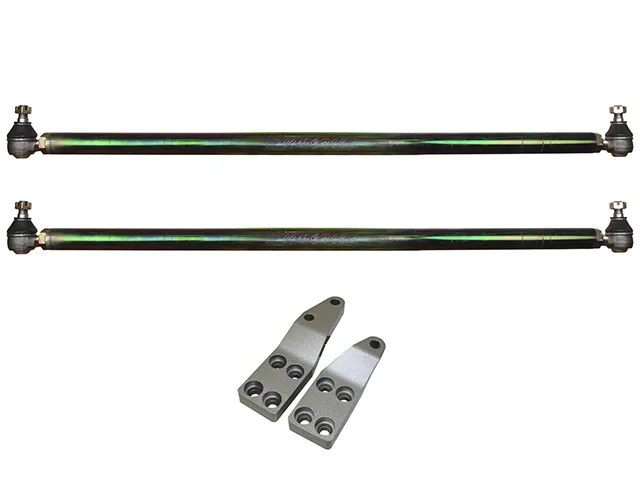 High Steer arms are designed to lift the steering arms, Drag Link and Tie Rod up above the springs to eliminate any chance of damaging the Tie Rod and or Drag Link.