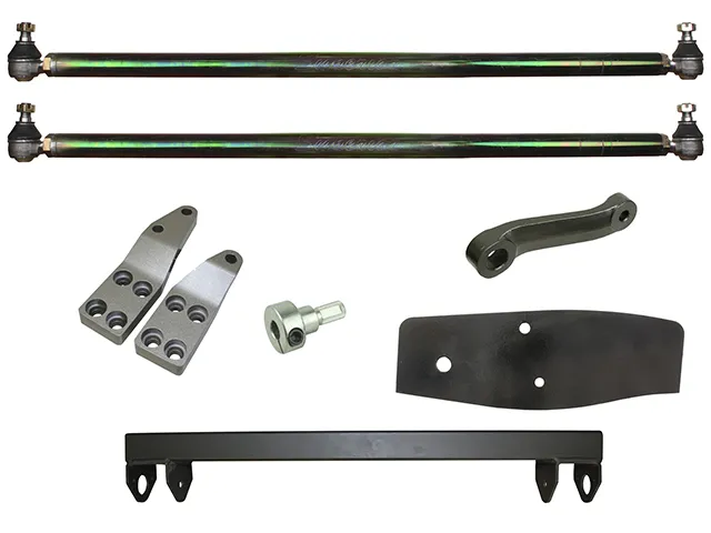 High Steer arms are designed to lift the steering arms, Drag Link and Tie Rod up above the springs to eliminate any chance of damaging the Tie Rod and or Drag Link.