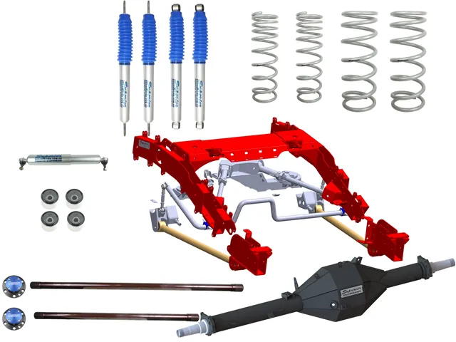 The Superior Engineering LandCruiser 79 coil kits can be supplied to suit a wide range of applications. We have packages and options from – VSB / State approved kits that use your factory housing in either Bolt-In or Weld-In to our bigger kits that can be Federally approved. Our Superior Outback Tourer™ kits allow a metric equivalent or imperial 35” tyre, 4” suspension lift kit, 4-tonne GVM, Wide-Track Chromoly Diamond Diff Housing.