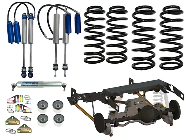 This is a full 2" lift kit with everything you need to lift and coil convert your Gen 1 Toyota LandCruiser 79 Series (Non-VSC) including our Superior Monotube Remote Reservoir Shocks.