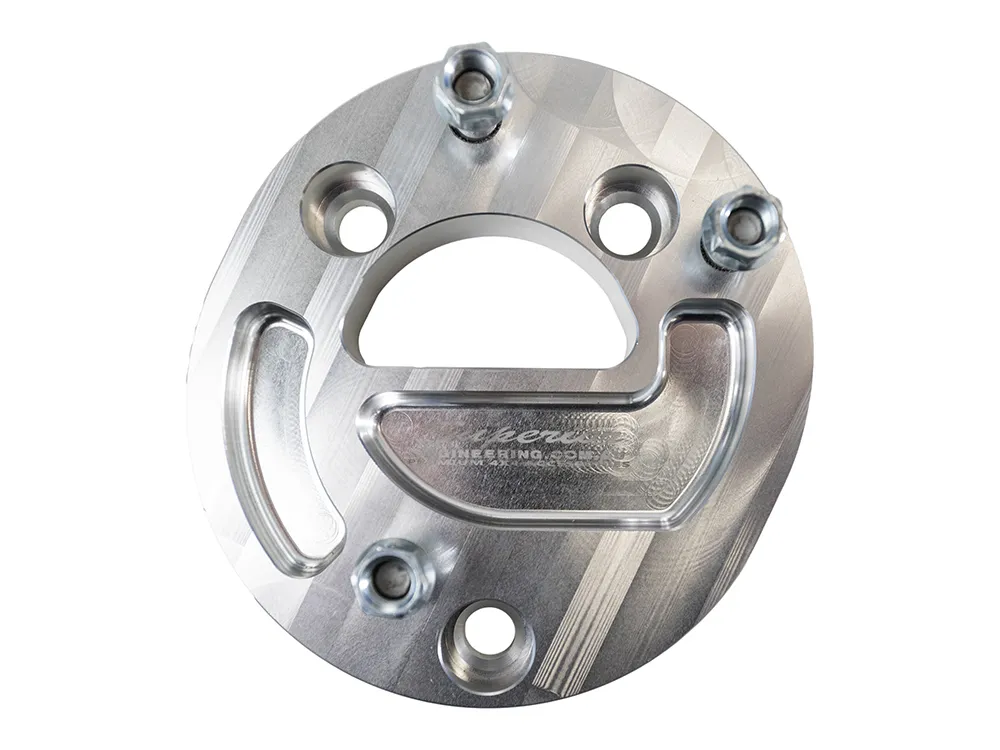 The Superior Rear Door Wheel Relocation Spacer seamlessly integrates with the OEM wheel mount on your Toyota LandCruiser 76 Series. The machined alloy finish complements the vehicle's aesthetics, giving it a rugged yet refined look. It fits snugly onto the rear door, providing a secure and stable mounting point for your extra-large tire.