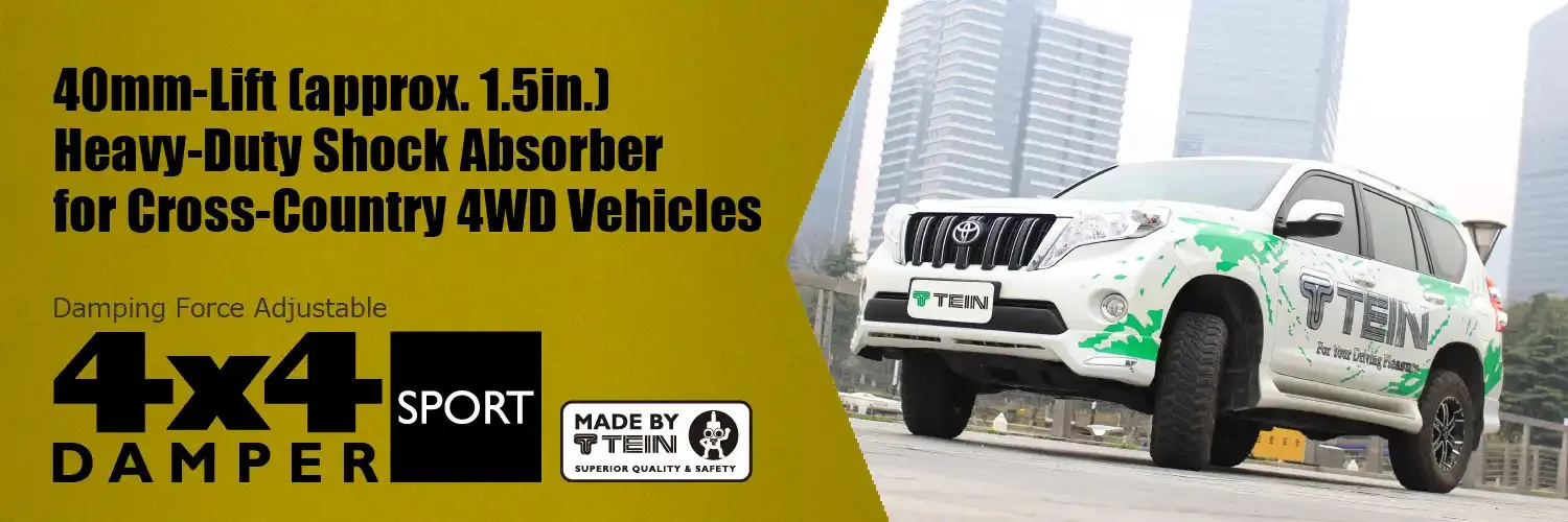 The ride height can be adjusted by moving the lower spring seat up or down. Its simple structure allows for easier handling.Standard ride height for 4x4 DAMPER SPORT is set at 40mm (approx. 1.5 inch) higher than the original, to accommodate various driving scenes from streets to off-roading.
