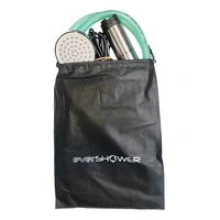 • Our “monsoon” water pump shower kit enables portable showering like no other. This high-quality, stainless steel pump unit can move water at around 30 litres per minute. It’s about 7 times more powerful than most portable shower pumps.