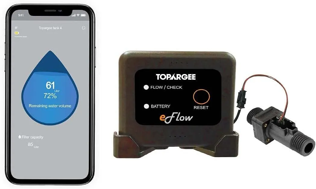 • The sender is fitted to the water line, plugged into the Topargee Bluetooth module and download