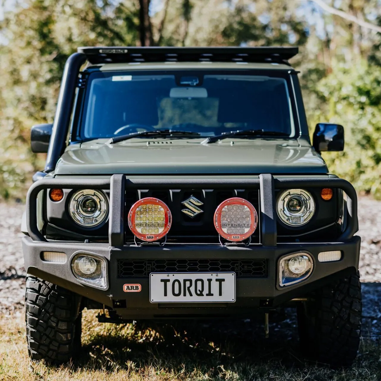 Torqits powder coated option in satin black is highly durable and scratch resistant. Complementing the color of the Jimnys body details and aftermarket accessories, this option gives your build a coordinated finish.