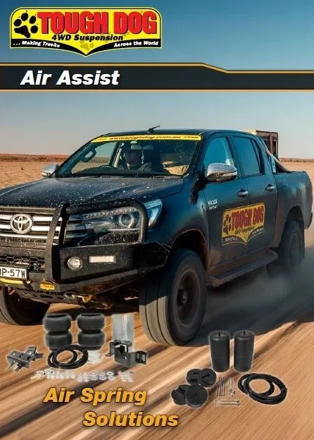 If your load changes all the time, an Air Assist suspension system could be for you.  Air Assist springs are specifically designed to level out and control the rear ride height of your vehicle.The high pressure polyurethane construction inserts are built tough for the harshest conditions & carry Tough Dog’s unlimited kilometre three year warranty.