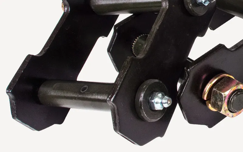 Greasable pins and shackles help protect the bushes from premature wear because of the ingress of dirt and grit. Applying grease through the nipple forces grease through the joint and out, taking with it foreign objects. Greasable components are particularly important to vehicles exposed to outback dust or high salt level environments like boat ramps and beach driving.
