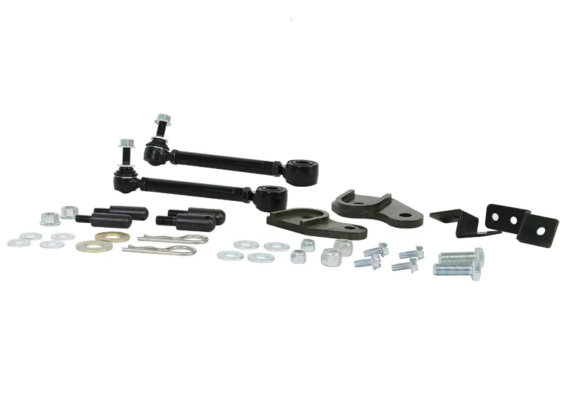 Not many enthusiasts are aware that OE and more importantly aftermarket sway bar effectiveness can be hindered by worn or inadequate mounts, drop links and lateral stoppers. Whiteline adjustable sway bar links are engineered to be up to the task with top spec, light weight componentry combined with a window of adjustability, eliminating sway bar preload on installation but most importantly ensuring the maximum output of the sway bar for improved grip and better handling.