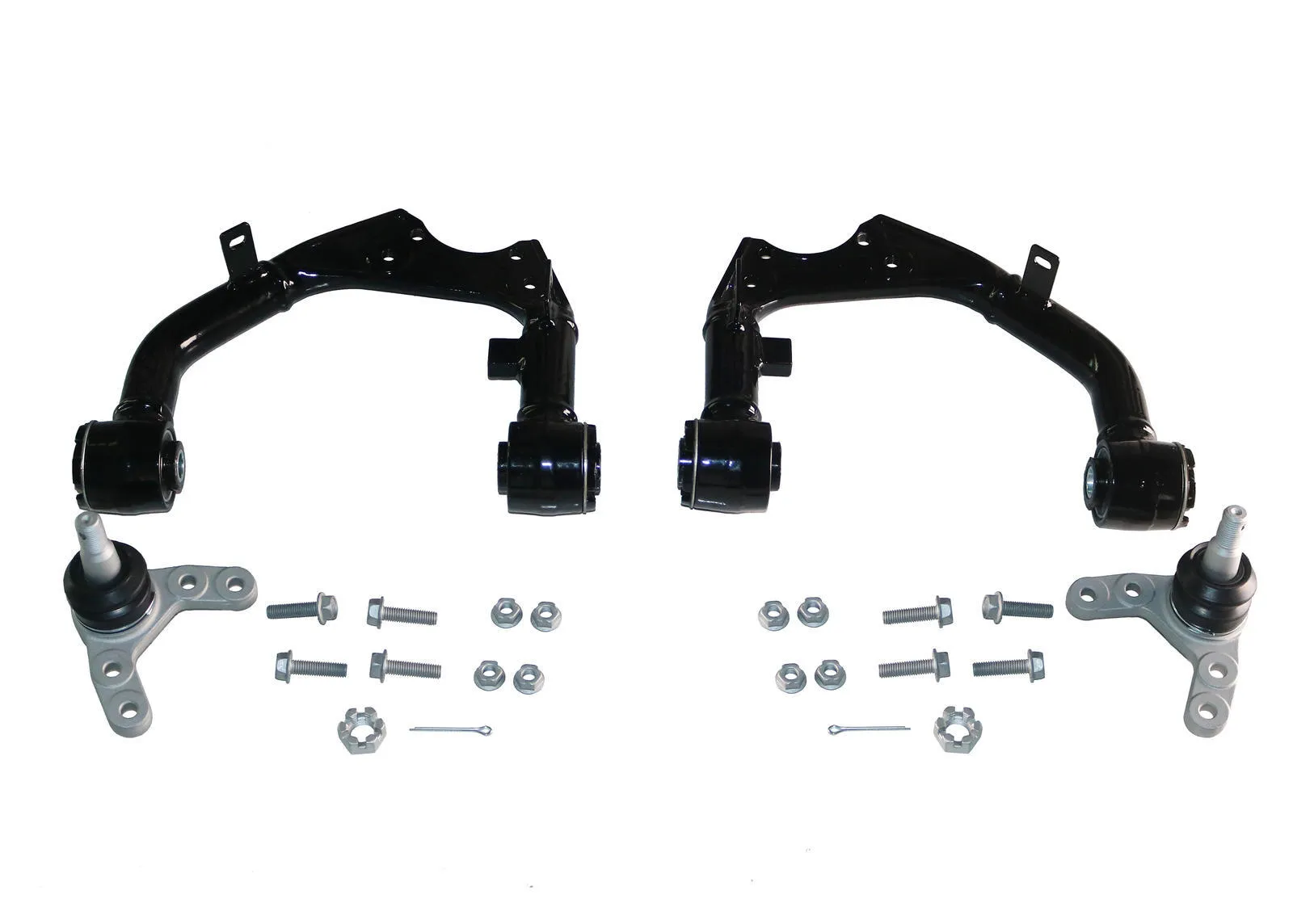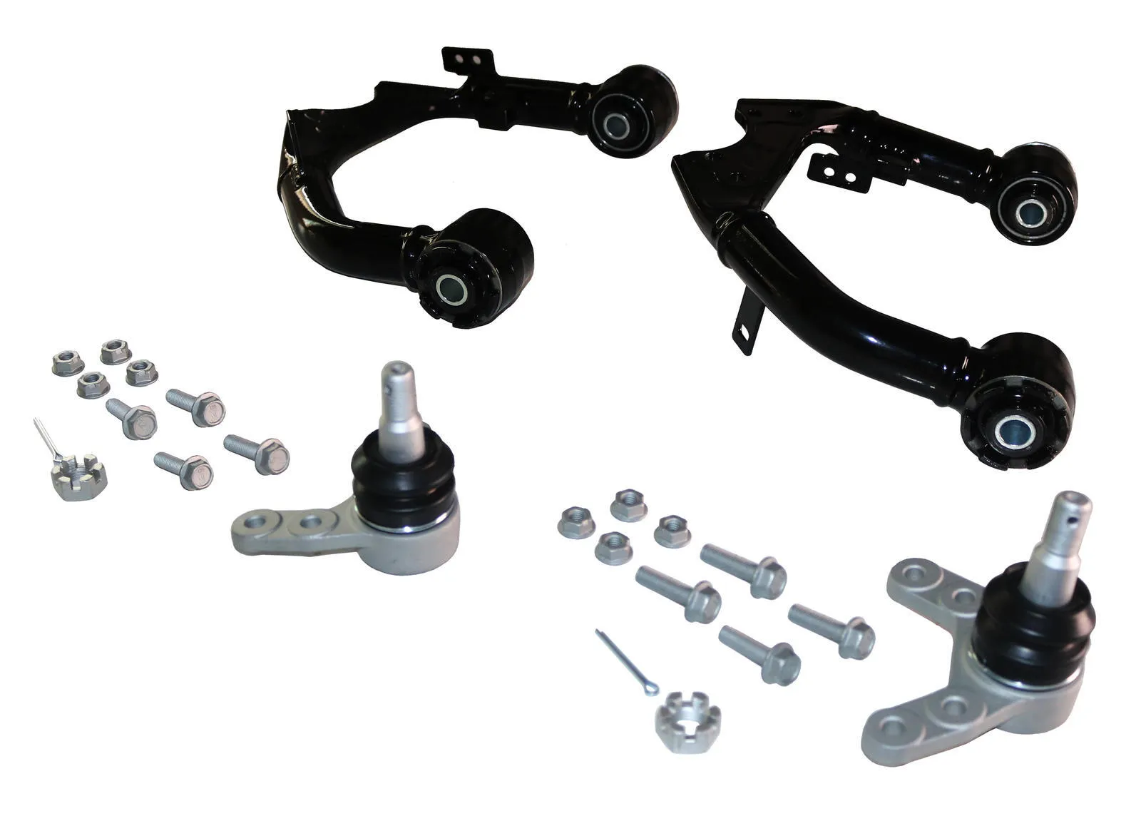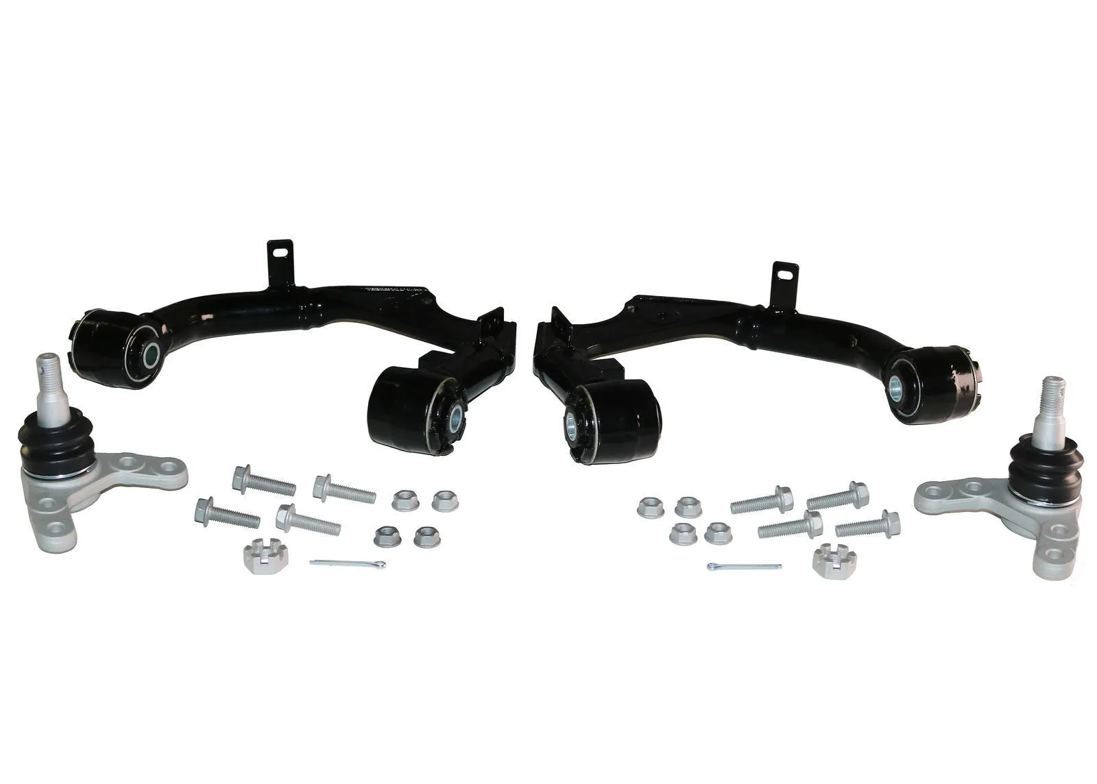 A short fall of the modern day IFS 4wd is the adjustment range provided for successful wheel alignments, this becomes even more of an issue when the vehicle is lifted by more than 1 inch. Not only does the vehicle run into camber and caster issues, but ball joint articulation and clearance issues to the coil over strut at ride and droop height. The new Whiteline offset UCA (Upper Control Arm) is an all-in-one solution for any vehicle that has been lifted between 30mm and 70mm. Providing an increase between +2.5 and +3.5 degrees of caster and up to 1.5 degrees of negative camber increase (figures quoted are based off an approximate 50mm/ 2 inch) along with greater clearance to the coil over strut and more articulation of the arm by virtue of new maintenance free GIIRO bushing technology.
