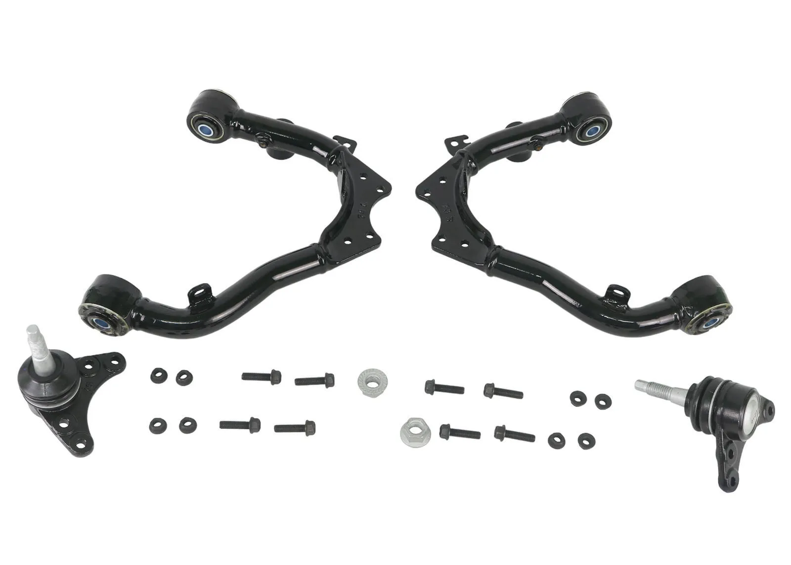 A short fall of the modern day IFS 4wd is the adjustment range provided for successful wheel alignments, this becomes even more of an issue when the vehicle is lifted by more than 1 inch. Not only does the vehicle run into camber and caster issues, but ball joint articulation and clearance issues to the coil over strut at ride and droop height. The new Whiteline offset UCA (Upper Control Arm) is an all-in-one solution for any vehicle that has been lifted between 30mm and 70mm. Providing an increase between +2.5 and +3.5 degrees of caster and up to 1.5 degrees of negative camber increase (figures quoted are based off an approximate 50mm/ 2 inch) along with greater clearance to the coil over strut and more articulation of the arm by virtue of new maintenance free GIIRO bushing technology.