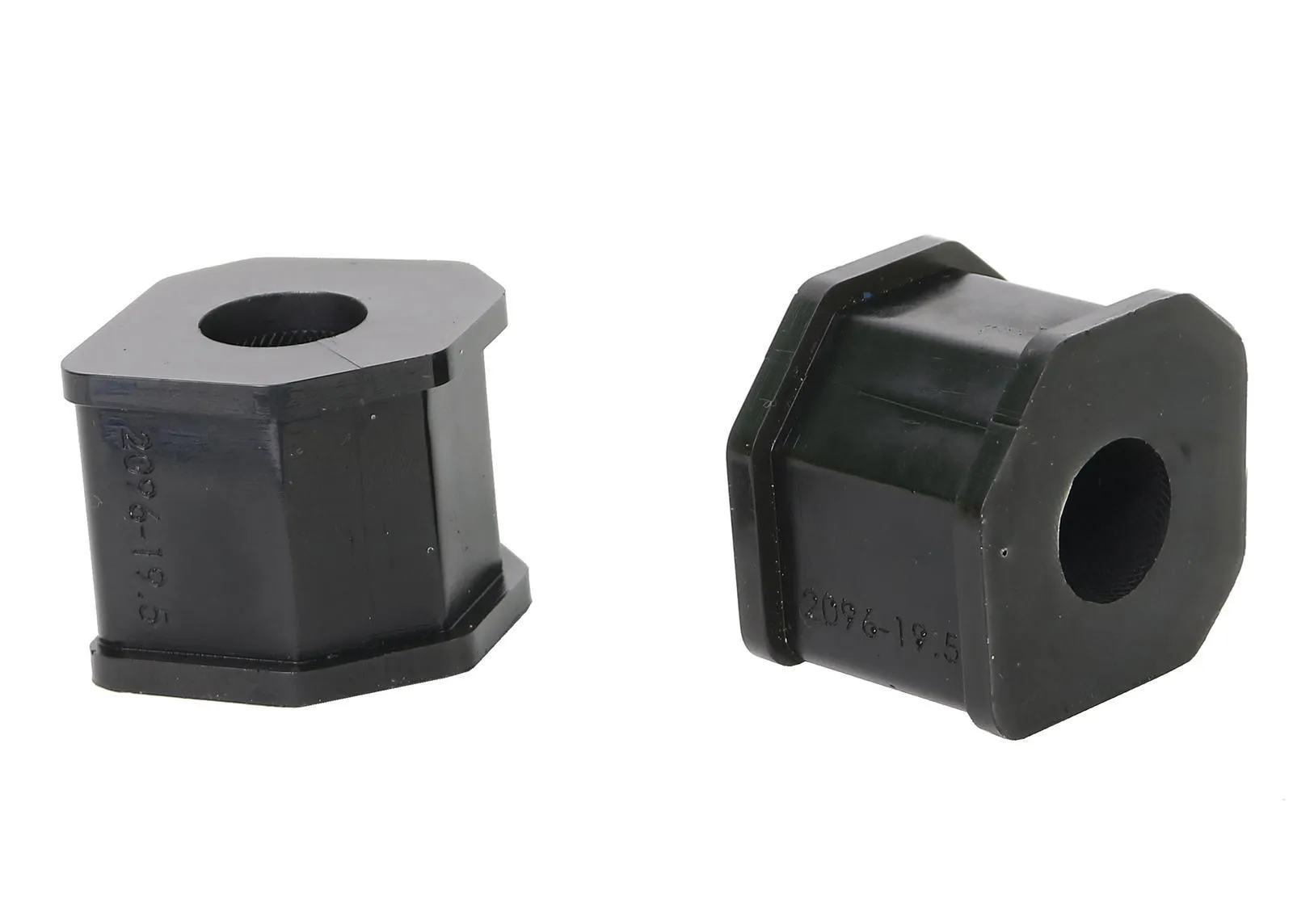 Designed to fit a 19.5mm sway bar. Whiteline's sway bar mount bushings not only boasts the latest in bushing material technology but feature a knurled ID specifically designed to retain grease. Backed up by a Limited Lifetime Warranty. Whiteline bushings are made from the latest highest quality synthetic elastomer and designed to synchronize your suspension system for optimal safety, handling, performance, ride quality, longevity and reduced maintenance. They are the most positive link between your vehicles body, springs, struts, arms, bars and shocks.
