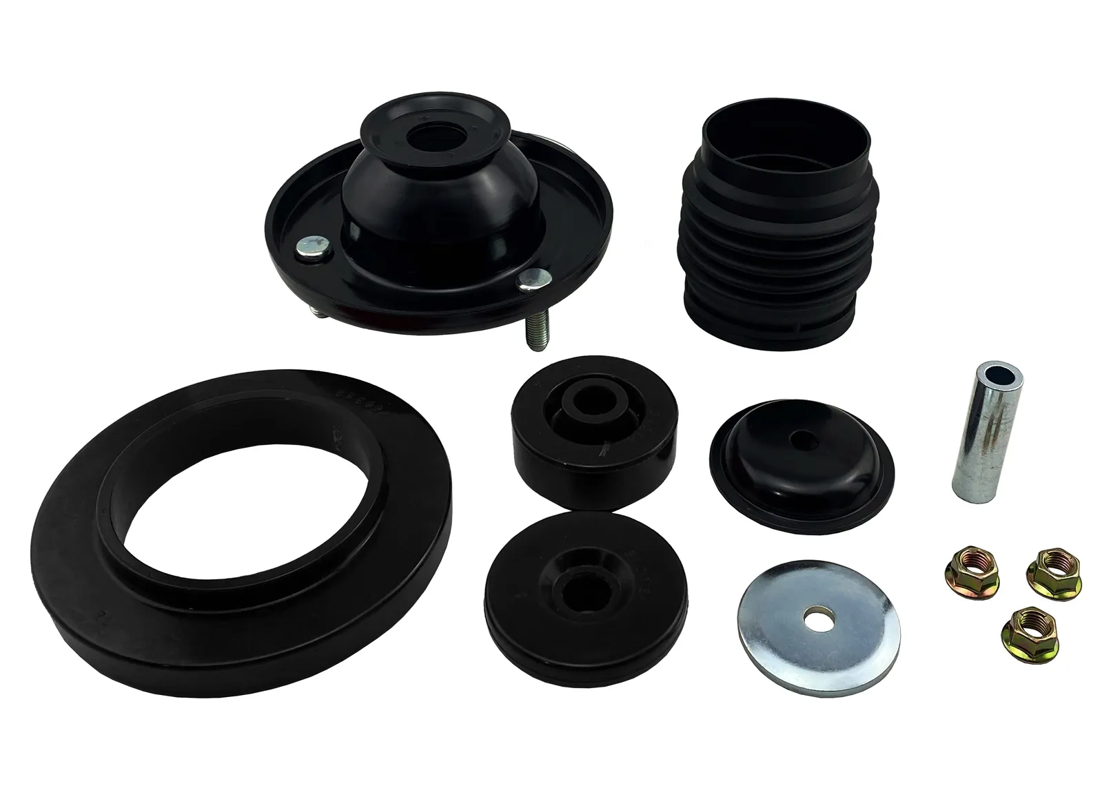 Hard working or lifted commercial or 4x4 vehicles tend to suffer from premature wear of the upper strut mount/ shock absorber bushings. The Whiteline kit contains new strut top, upper strut mount pads and shock absorber pin bushings to restore the strut mount to as new condition.