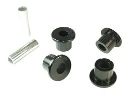 A critical service item for any leaf sprung vehicle. High kilometres and heavy load carrying causes excessive wear on rubber bushings. Whiteline's signature black bushings are made tough and offer outstanding abrasion resistance, high load bearing capability (4WD's, utes and towing), flexibility, increased tensile strength and chemical resistance to oil, grease, ozone and weathering.