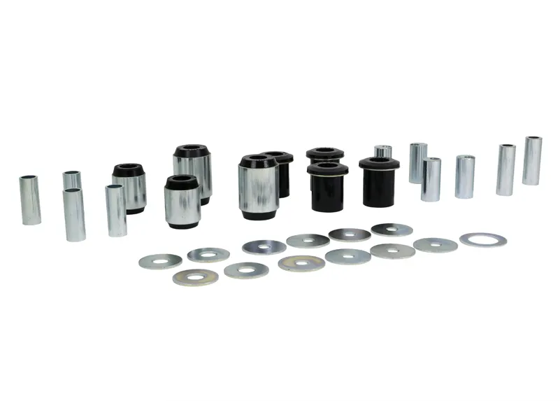 Essential servicing kit for your vehicle featuring key hard working front control arm bushings to replace worn and tired factory units. Whiteline's signature black bushings are made tough and offer outstanding abrasion resistance, high load bearing capability (4WD's, utes and towing), flexibility, increased tensile strength and chemical resistance to oil, grease, ozone and weathering