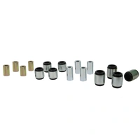 Worn front control arm bushings have a huge influence on vehicle stability, steering precision and braking efficiency.Essential servicing kit for your vehicle featuring key hard working front control arm and strut rod bushings to replace worn and tired factory units. Whiteline's signature black bushings are made tough and offer outstanding abrasion resistance, high load bearing capability (4WD's, utes and towing), flexibility, increased tensile strength and chemical resistance to oil, grease, ozone and weathering.