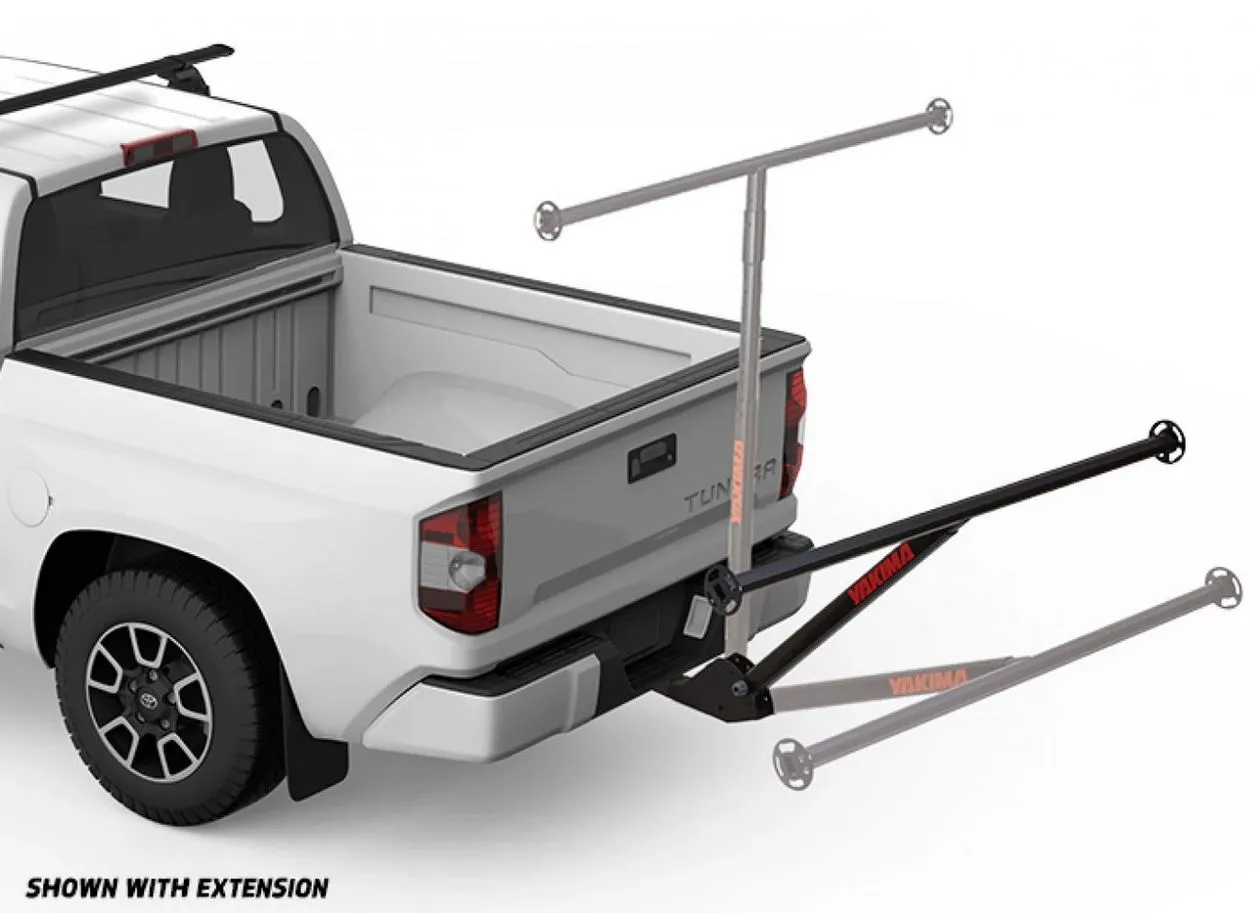 The LongArm truck bed extender easily extends the length of any truck bed up to 122 cm. Light and strong, the aluminium hitch mounted rack is the ideal solution for hauling fishing kayaks, boards, lumber, ladders and more. Adjustable to three distinct load-carrying positions and rated to carry up to 136 kg in lower positions, the LongArm takes your truck bed to the next level.