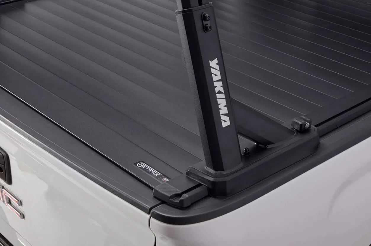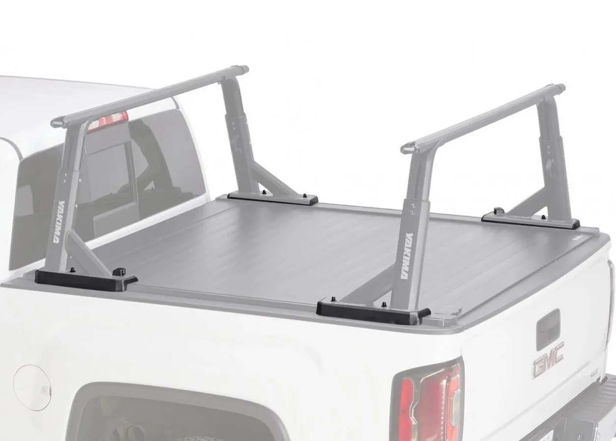 Now you can haul a ton of gear without sacrificing the security of your covered bed. This kit adapts Yakimas OverHaul HD and OutPost HD truck rack systems to work with the integrated tracks on Retrax XR Series, Pace-Edwards UltraGroove (except for 2004+ F-150), and Ford Embark LS Tonneau covers. So you can enjoy the advantages of both a retractable Tonneau cover and an overbed truck rack.