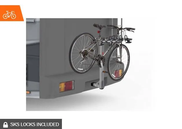 • Included full SKS security package: HitchLock locks rack to RV and LockDown™ cable secures bikes to rack, all with a single key.