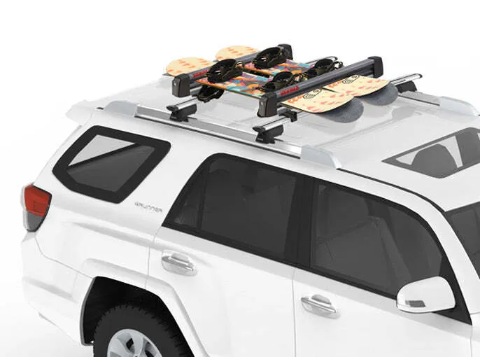 • Easily carries 6 sets of skis – up to 120mm wide at the tip – or 4 snowboards