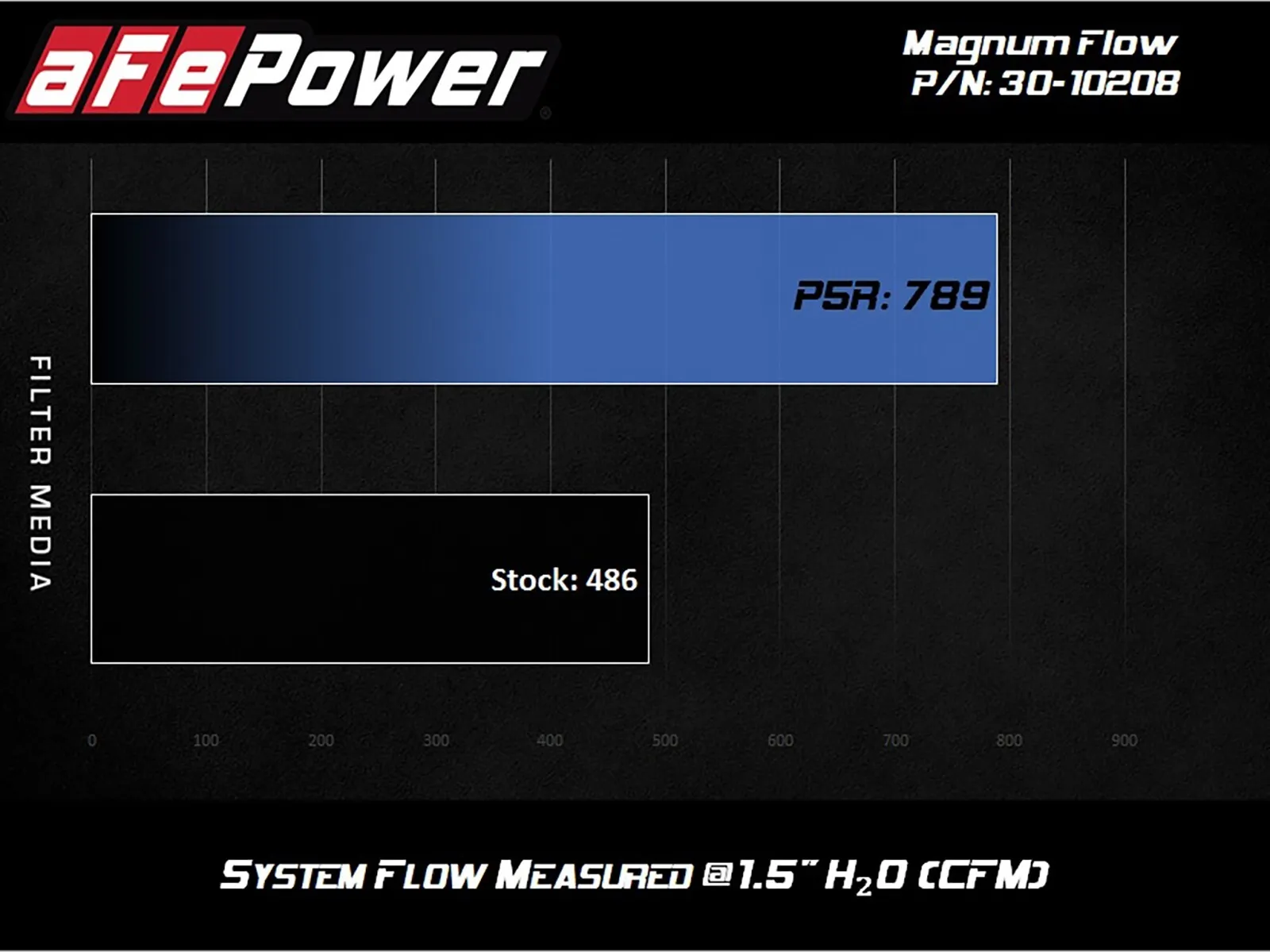 Pro 5R Filter Media: This filter features five layers of pre-oiled cotton gauze media to provide maximum performance. Its progressive layering allows the filter to flow at high levels even when dirty. This media is perfect for street and/or track use. Pro 5R filters are easily recharged with aFe's POWER CLEANER and blue air filter oil.