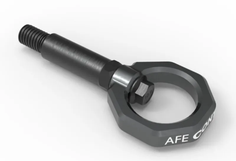 Add aggressive styling, and useful functionality to your BMW with aFe Controls front tow hook. Its sleek design not only looks great but is strong enough to safely winch your car onto a tow truck or get towed trackside if the need arises. Our BMW specific CNC machined stem and loop is made of 4130 steel. The stem is black zinc coated for corrosion resistance. The loop is powder coated Gray (Red, Blue, and black are available). This is not a universal tow hook. The stem was specifically designed for the BMW and the length was carefully determined to fit the front bumper. A proper rear tow hook to match is also available. (p/n 450-502002-G) Both the stem and bolt threads are pre-coated with Vibra-tite threadlocker. This keeps your tow hook from loosening due to vibration. The special threadlocker is designed to remain flexible, removable, and reusable.