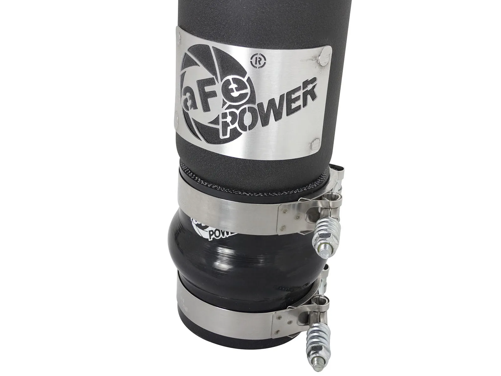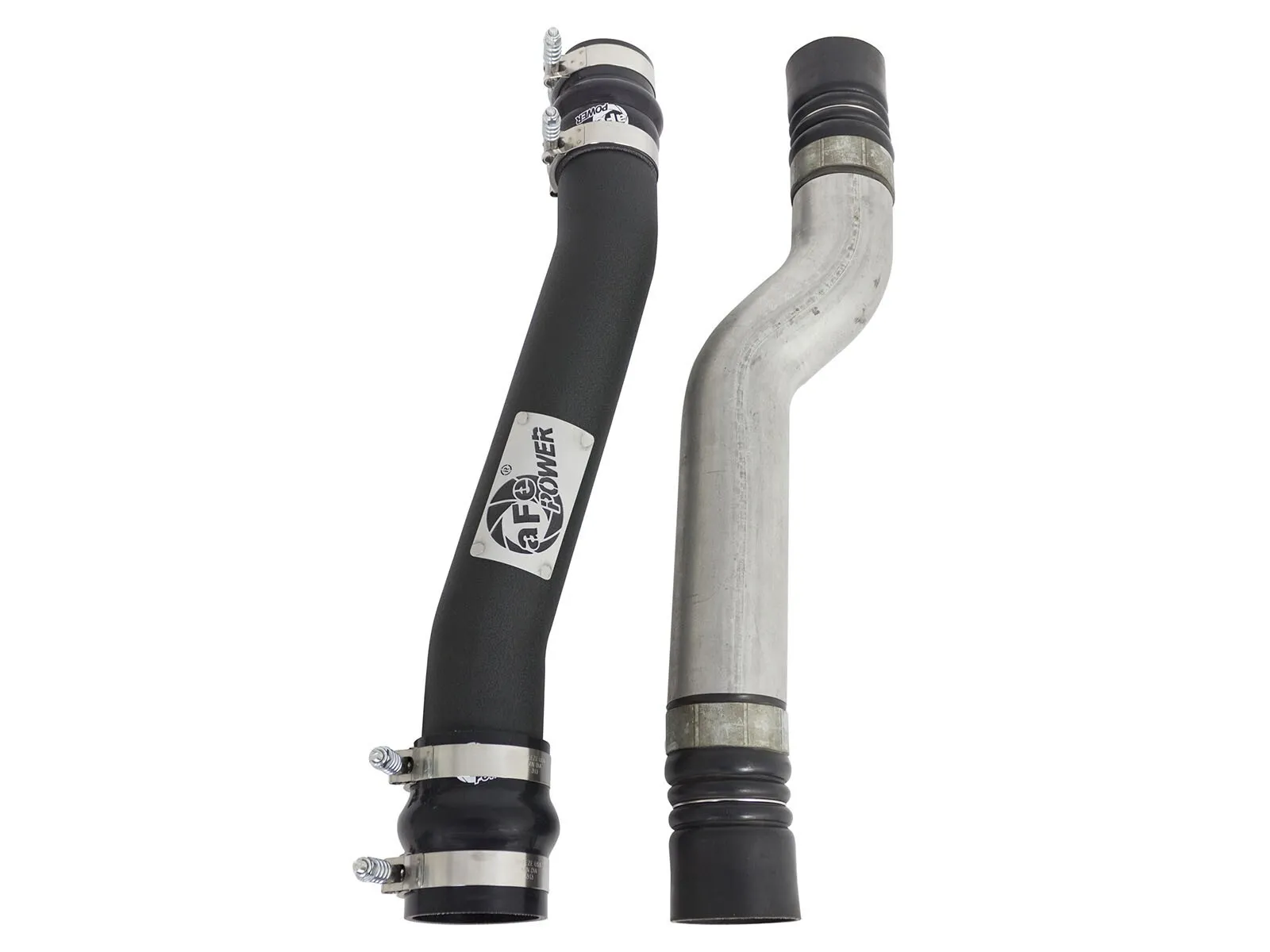 Flow and Performance:aFe Power's intercooler tubes are constructed from 3" (hot side) and 3-1/2" (cold side) mandrel-bent aluminum tubing for maximum flow then, powder-coated for a nice finish. The high-temp wrinkle-black powder-coating also insulates the tubes from engine heat and protects the tube from corrosion. The smooth transition bends decrease turbulence, minimize pressure loss, while increasing horsepower and torque.