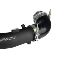 Smooth transitions in the mandrel-bent aluminum tubing decrease turbulence and minimize pressure loss, increasing horsepower and torque. This tube kit includes high-quality, stainless-steel, spring-loaded T-bolt clamps and heavy-duty, 5-ply, polyester reinforced silicone couplings. This intercooler tube kit features a factory style billet aluminum quick-connect adapter with an O-ring seal to ensure a leak-free fit while maintaining superior strength and durability. Finished in Wrinkle Black powder coating with a unique laser-etched aFe power logo for a custom look.