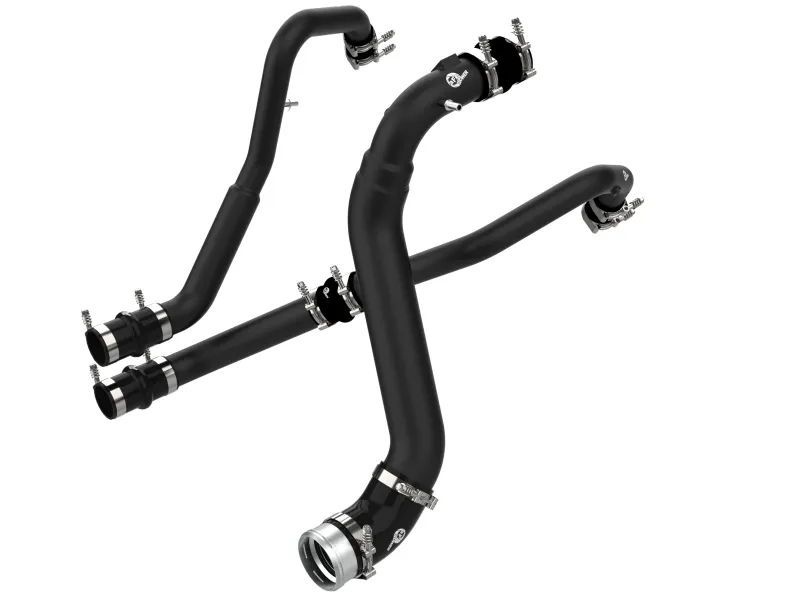 Smooth transitions in the mandrel-bent aluminum pipes decrease turbulence and minimize pressure loss, increasing horsepower and torque. The BladeRunner charge pipe kit provides a smooth transition between the turbo and the engine for lower operating temperatures and increased power. This charge pipe kit features a factory style billet aluminum quick-connect adapter with an o-ring seal to ensure a leak-free fit while maintaining superior strength and durability. Finished in wrinkle black powder coating with a unique laser-etched aFe POWER logo for a custom look.