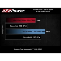 Smooth transitions in the mandrel-bent aluminum pipes decrease turbulence and minimize pressure loss, increasing horsepower and torque. The BladeRunner charge pipes kit provides a smooth transition between the turbo and the engine for lower operating temperatures and increased power. This kit includes high-quality, stainless-steel, spring-loaded T-bolt clamps and heavy-duty, 5-ply, polyester reinforced silicone couplings. This charge pipe kit features factory style billet aluminum quick-connect adapter with an o-ring to ensure a leak-free fit while maintaining superior strength and durability. Finished in textured red powder coating with a unique laser-etched aFe power logo for a custom look.