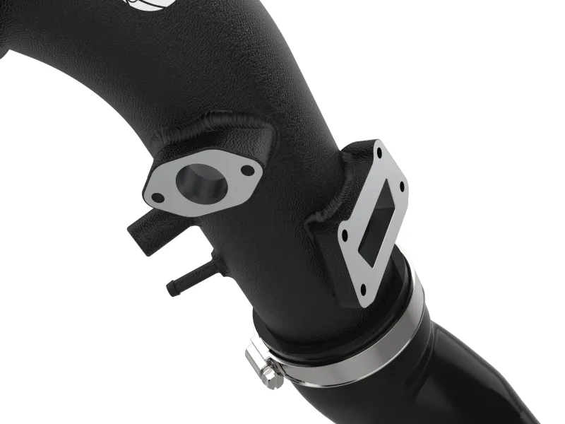 Smooth transitions in the mandrel-bent aluminum pipes decrease turbulence and minimize pressure loss, increasing horsepower and torque. This charge pipe kit provides a smooth transition between the turbo and the engine for lower operating temperatures and increased power. This kit includes high-quality, stainless-steel, SmartSeal clamps and heavy-duty, 5-ply, polyester reinforced silicone couplings for superior strength and durability. Finished in wrinkle black powder coating with a unique laser-etched aFe POWER logo for a custom look.