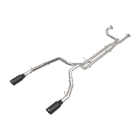 The Vulcans unique X / H-pipe design improves the RAM TRX exhaust flow direction and utilizes no mufflers delivering more power and an aggressive tone throughout the RPM range without interfering with driver or passengers hearing in the cab. Both mitered merge x-pipe and crossover balance tube replaces mufflers to evenly distribute exhaust pulses which maximizes scavenging, reduces drone and improves sound. On the throttle, this system produces an aggressive, deep exterior sound releasing horsepower and torque. At cruising RPMs the Vulcan maintains sound quality in the cab. MIG-welded, 3 IN mandrel-bent 304 stainless steel tubing increases to 3-1/2 diameter tailpipes for a Large Bore style exhaust. Dual 6 IN large diameter, 304 stainless steel exhaust tips with matte black finish features laser-etched aFe POWER logos for a unique style. Utilizing factory style flanges and hangers this system is a direct bolt-on system, which requires no cutting or modifications for a hassle-free installation.