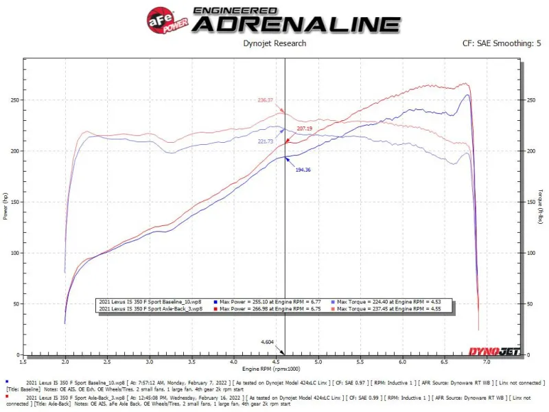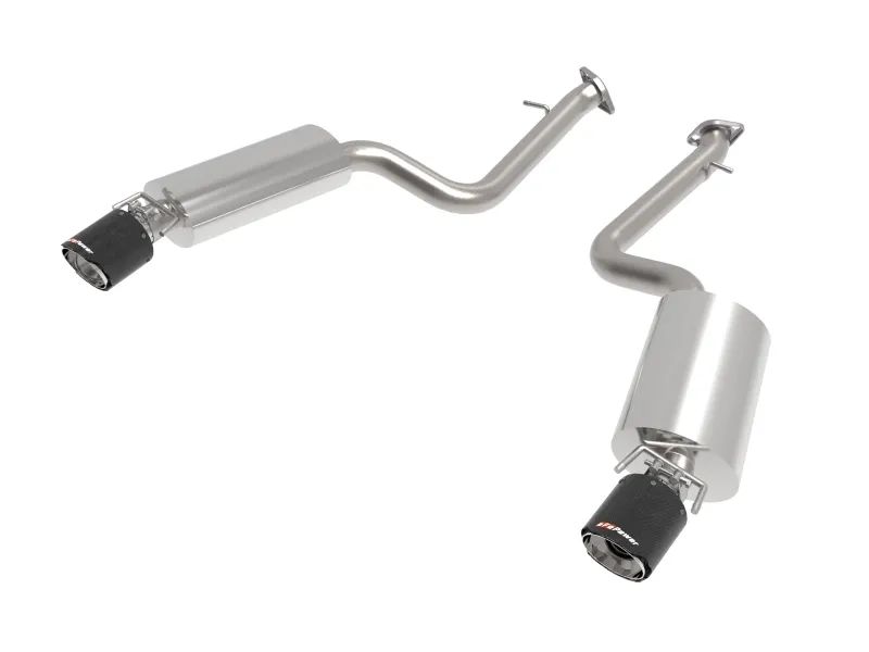 This system produced gains of up to +13 HP and +14 lbs. x Ft. TQ., as measured on our in-house dyno. This axle-back exhaust system is constructed of 2-1/2 IN mandrel-bent 304 stainless steel tubing for maximum strength and durability. This system features dual high-flow 304 stainless steel mufflers, producing a smooth sound. Finishing off this exhaust system are dual 4-1/2 IN diameter carbon fiber 304 stainless steel clamp-on exhaust tips. The tips features an aFe POWER logo for a unique style. This system produces a smooth sound unleashing all available horsepower and torque. Utilizing factory style flanges and hangers this system is a direct bolt-on system, which requires no cutting or modifications for a hassle-free installation. State-of-the-art computer-aided design technology is utilized for precise vehicle fitment. 100% MIG-Welded for race-proven strength and durability.