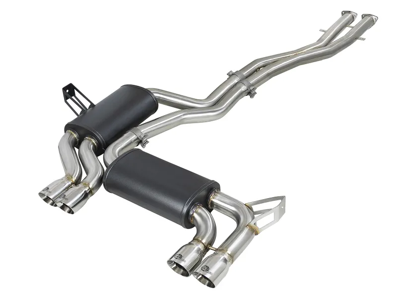 Unleash power and sound while improving the looks on your M3 Coupe with this MACH Force-Xp cat back system by aFe POWER. The larger diameter, mandrel-bent tubing along with high-flow stainless steel mufflers optimize the sound and looks of your vehicle. This 100% hand TIG-welded system offers proven the quality and durability found in aFe POWER products, and is finished off with four massive 3" stainless steel exhaust tips with laser-etched logos.