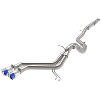 This system produced gains of up to +10 HP and +9 lbs. x Ft. TQ., as measured on our in-house dyno. This cat-back exhaust system is constructed of 3 IN - 2-1/2 IN mandrel-bent 304 stainless steel tubing for maximum strength and durability. Finishing off this exhaust system are dual 4" diameter blue flame 304 stainless steel clamp-on exhaust tips. The tips features a laser etched Takeda logo for a unique style. This system produces a mild sound unleashing all available horsepower and torque. Utilizing a factory style flange and hangers this system is a direct bolt-on system, which requires no cutting or modifications for a hassle-free installation. This cat-back exhaust system uses a heavy duty flex pipe with an internal interlock liner for added strength and durability. Utilizing state-of-the-art computer-aided design technology, this exhaust system is designed for custom, high tolerance factory fitment. MIG-Welded for race-proven strength and durability.