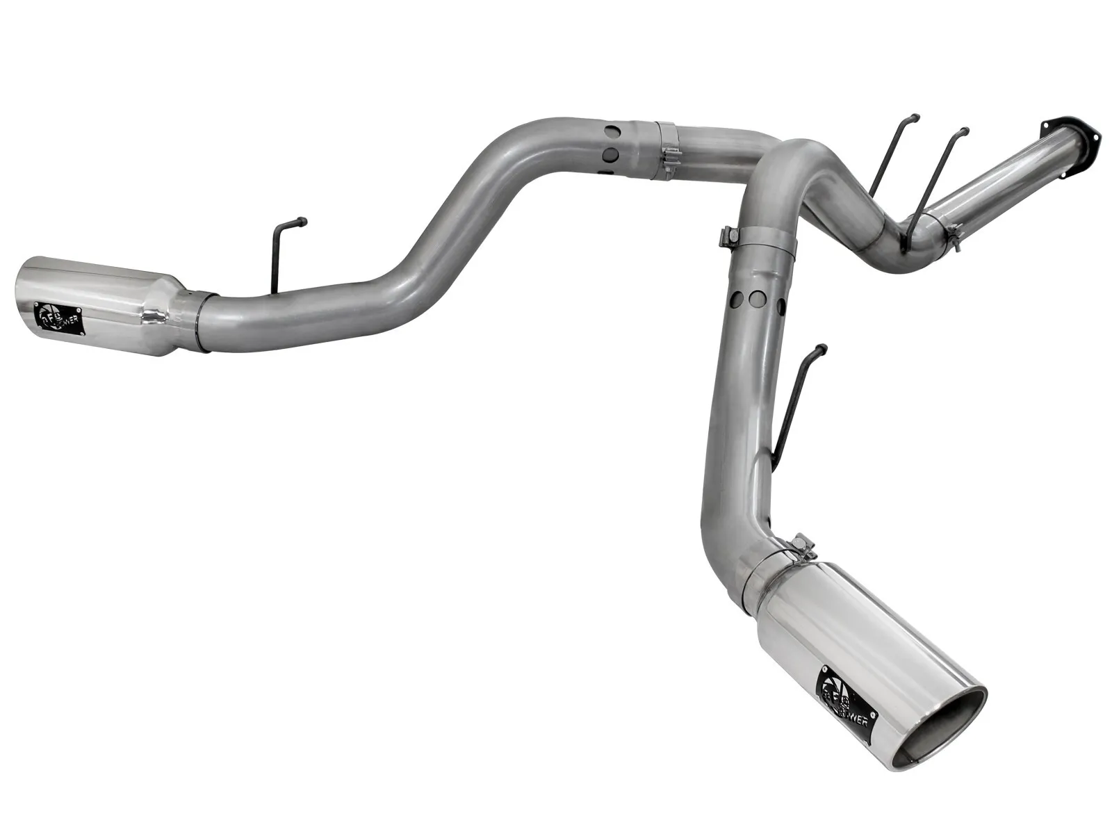 6" Angle-Cut Rolled Edge Polished Clamp-On Tips:Finishing off the exhaust are dual side exit 6" stainless steel clamp-on tips with a high luster polished finish. A unique laser-cut aFe Power logo plate is riveted on for an aggressive style.
