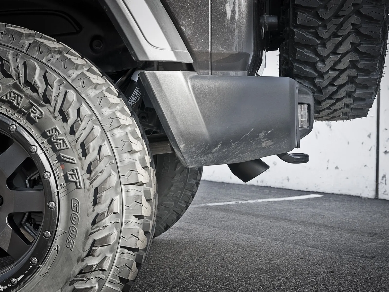 aFe’s Mach Force-Xp axle-back exhaust system delivers form, function and style to your Jeep JL. This efficient, 2 1/2" mandrel-bent Hi-Tuck system delivers extra ground clearance when off-roading by replacing the stock, low-hanging muffler assembly. This stainless steel system utilizes the factory front resonator pipe to produce a very aggressive exhaust tone unleashing all available horsepower and torque and includes a 3 ½” clamp-on metallic black exhaust tip for street style and is removable for rough terrain.