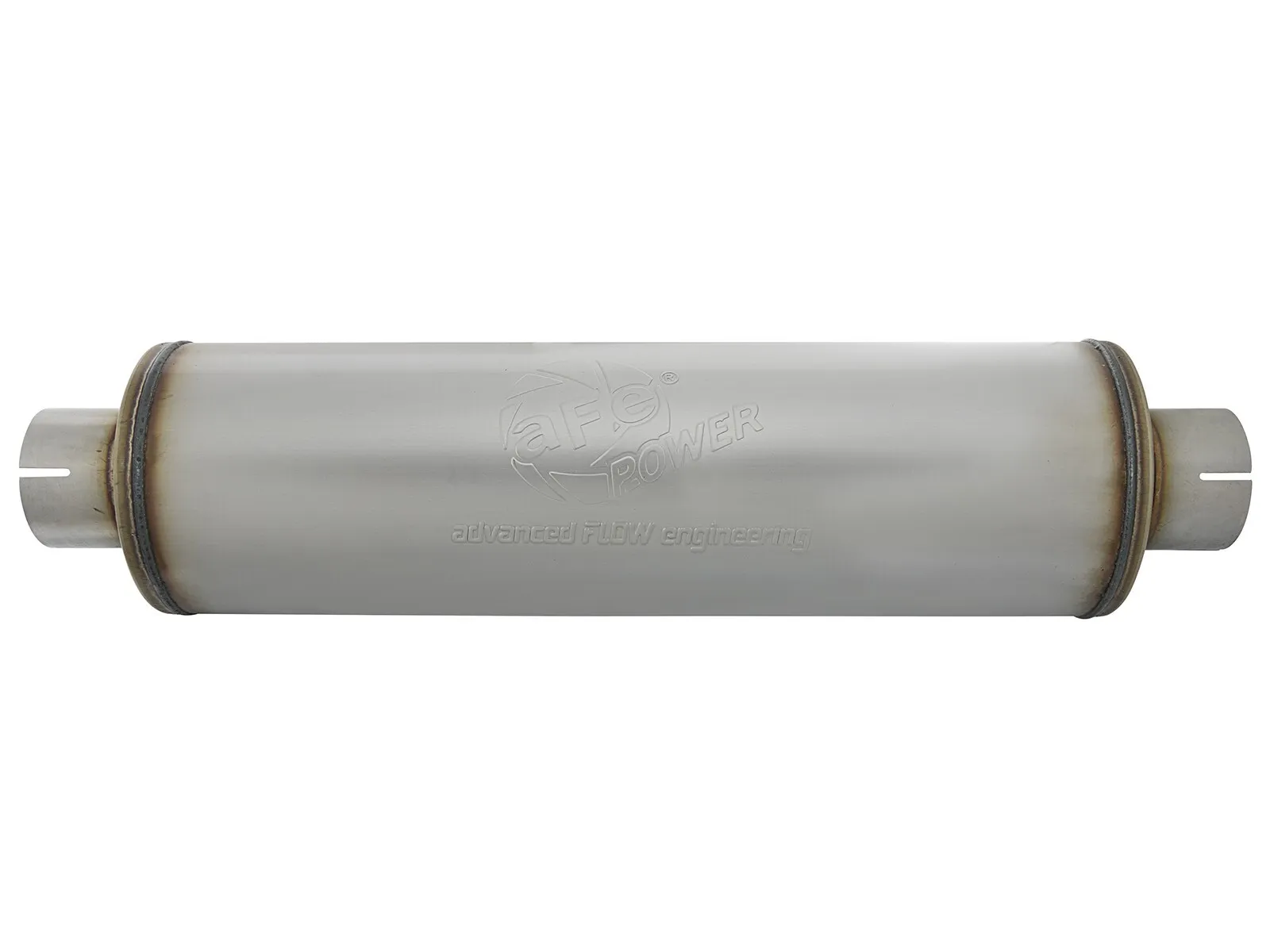 The aFe Universal fit 409 Stainless Steel Performance Muffler is designed to provide a deep, throaty, powerful sound on acceleration, but maintain a smooth sound at idle. This muffler is constructed of brushed finished 409 stainless steel and uses a straight through perforated core with heat resistant packing to reduce backpressure and maximize exhaust flow. You will see increased performance and improved throttle response over the factory exhaust. Also featuring a stamped aFe Power logo for an aggressive style.