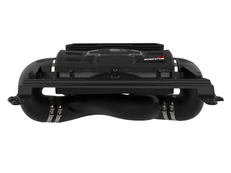 A pair of 360-degree radial flow air filters feature our oil-free Pro DRY S media with three layers of synthetic media for maximum convenience. The progressive layering provides great filtration efficiency and dust holding capacity, while not requiring the use of oils. This media is best suited for street and light off-road use. The inverted tops makes for more filter surface area, resulting in longer service intervals. Momentums innovative filter-to-housing interface was built to feature the largest air filter possible. Once the system is installed, the air filters can be easily removed from the housing for maintenance by only uninstalling the side intake tubes. The smooth one-piece sealed housing, constructed of heat-resistant cross-linked polyethylene (XLPE), features our patent pending filter-to-housing interface. Its innovative design minimizes the total number of parts, making for an easy installation. A massive clear sight window allows for hassle-free filter inspection without having to disassemble your intake system. The housing incorporates both the factory hood air inlet scoop and the grille inlet using no additional hardware. This system features a trio of high quality, computer-designed, dyno-tuned intake tubes to achieve maximum power gains while maintaining a perfect fit. Our XLPE material is heat soak resistant and extremely durable. Stainless-steel T-bolt clamps are included for strength, and a premium silicone coupling allows for ample flexibility and durability. Momentum GT intakes are designed with fewer parts for a fast and easy installation.