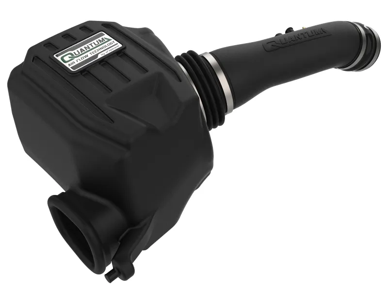 This 9 tall 360-degree radial flow air filter features a 5" flange and our pre-oiled Pro 5R media with five layers of progressively finer cotton gauze media for maximum performance. It provides your engine with the largest amount of high-flowing air and delivers the highest power gains in most cases. This media is perfect for street use. Its inverted top makes for more filter surface area, resulting in longer service intervals. The filter features an injection molded base and top for lighter weight and rigidity. Its base includes a built-in 3-angle velocity stack for smooth, even airflow and captive screws to easily attach the filter to the housing. Quantum uses an integrated filter-to-housing design that attaches both components with four captive screws, making for a positive surface area seal and easy installation. Its durable sealed housing features a unique, five rib, industrial-grade look for aFe quality recognition. Quantum uses a dyno-tuned, computer designed intake tube to achieve optimum air flow and a perfect fit. Its XLPE (cross-linked polyethylene) material is heat soak resistant and extremely durable. Quantum cold air intake systems include a silicone bellows coupling to absorb excessive engine movement and provide flexibility, for a long-lasting secure installation. Quantum intakes are designed with fewer parts for a quick and easy installation. This is a direct fit intake system that utilizes factory mounting points and requires no cutting or modifications. All necessary clamps, couplings, and hardware are included.