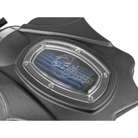 The smooth one-piece sealed housing with auxiliary air scoop is used to eliminate the use of multiple-piece housings and ensure the coolest air intake charge available. A urethane plug is also included for those cold weather applications where you want to block the auxiliary air scoop. A large, clear sight window is used for a hassle-free filter inspection and an aggressive style.