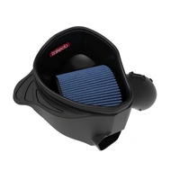 This 7 tall 360-degree radial flow air filter features a 4 oval flange and our oiled Pro 5R media with five layers of progressively finer cotton gauze media for maximum airflow and performance. This media is best suited for street and track use. The included massive air filter is surrounded by an open-element XLPE (cross-linked polyethylene) polymer housing that minimizes warm engine air for maximum performance. Its open design allows for easy viewing of the air filter and delivers an aggressive air intake sound. The tube is computer-designed to achieve maximum power gains while maintaining a perfect fit. Its XLPE material is heat soak resistant and extremely durable. This intake is designed to use factory mounting locations, minimizing the use of unnecessary hardware, ensuring a perfect fit every time. Its revolutionary design, featuring our patent pending filter-to-housing interface uses half the number of parts of a traditional cold air intake system. Stainless-steel clamps are included for strength, and a premium bellows coupling allows for ample flexibility.