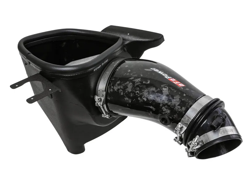 This 7 tall 360-degree radial flow air filter features a 5-1/2" by 7-1/2" flange and our oil-free Pro DRY S media with three layers of synthetic media for maximum convenience. Its progressive layering provides great filtration efficiency and dust holding capacity, while not requiring the use of oils. This media is best suited for street and light off-road use. The included massive air filter is surrounded by an open-element XLPE (cross-linked polyethylene) polymer housing that minimizes warm engine air for maximum performance. Its open design allows for easy viewing of the air filter and delivers an aggressive Air Intake sound. Multiple air inlets bring in cool air when under power without capturing any warm air surrounding the engine. The factory MUA (Multi-Air Unit Actuator) is easily transferred to the aFe POWER housing to guarantee correct crankcase flow, avoiding check engine lights and damaging factory hoses and sensors. The lightweight tube is computer-designed to achieve maximum power gains while maintaining a perfect fit. Manufactured from 100% forged carbon fiber, it features zero fiberglass and is clear-coated for the highest quality construction, inspired from the optional forged carbon fiber interior accents. This is a direct fit intake system that utilizes factory mounting points. All necessary stainless-steel clamps, silicone coupling, and hardware are included. Its revolutionary design, featuring our patent pending filter-to-housing interface, uses half the number of parts of a traditional cold air intake system.